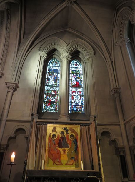 - a tabernacle and set of candlesticks which were used when the cathedral last operated (for a very short time) under the “Roman rite”, when the Roman Catholic king, James II, having fled England in 1690, came to Ireland to fight for his throne and attended High Mass in the temporary restoration of Christ Church as a Roman Catholic cathedral.