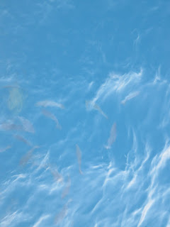 “Swimming” with Sharks! While Derek was actually diving I stay back and we laid on a platform and we were lowered into the water while the staff above through food in for the sharks and fish. It was intense and probably one of the coolest things I have done!