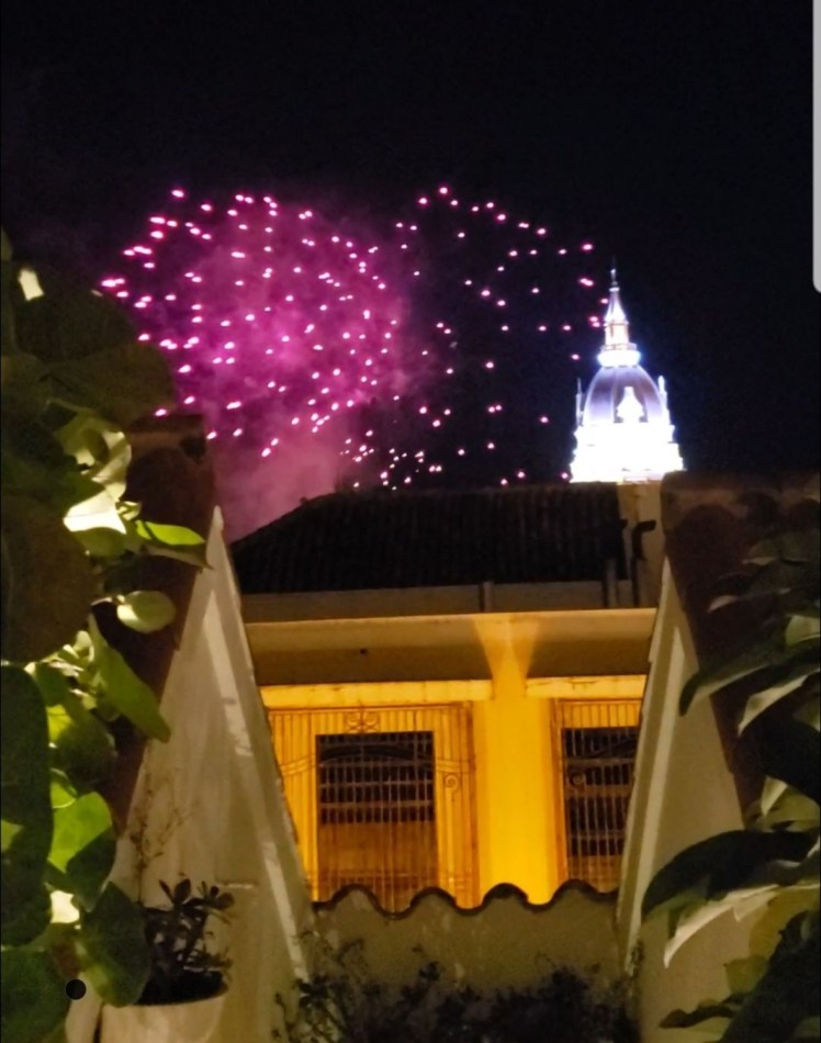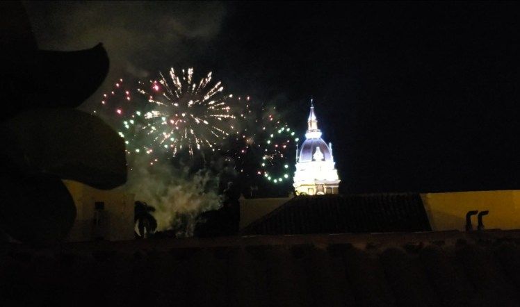Our hotel is perfect!! Definitely made for tinier people but it’s great, small, and very cute. We unpacked got settled and shared a Colombian beer by the pool right after sunset. We were surprised by fireworks!! So nice of them to welcome us 🙂