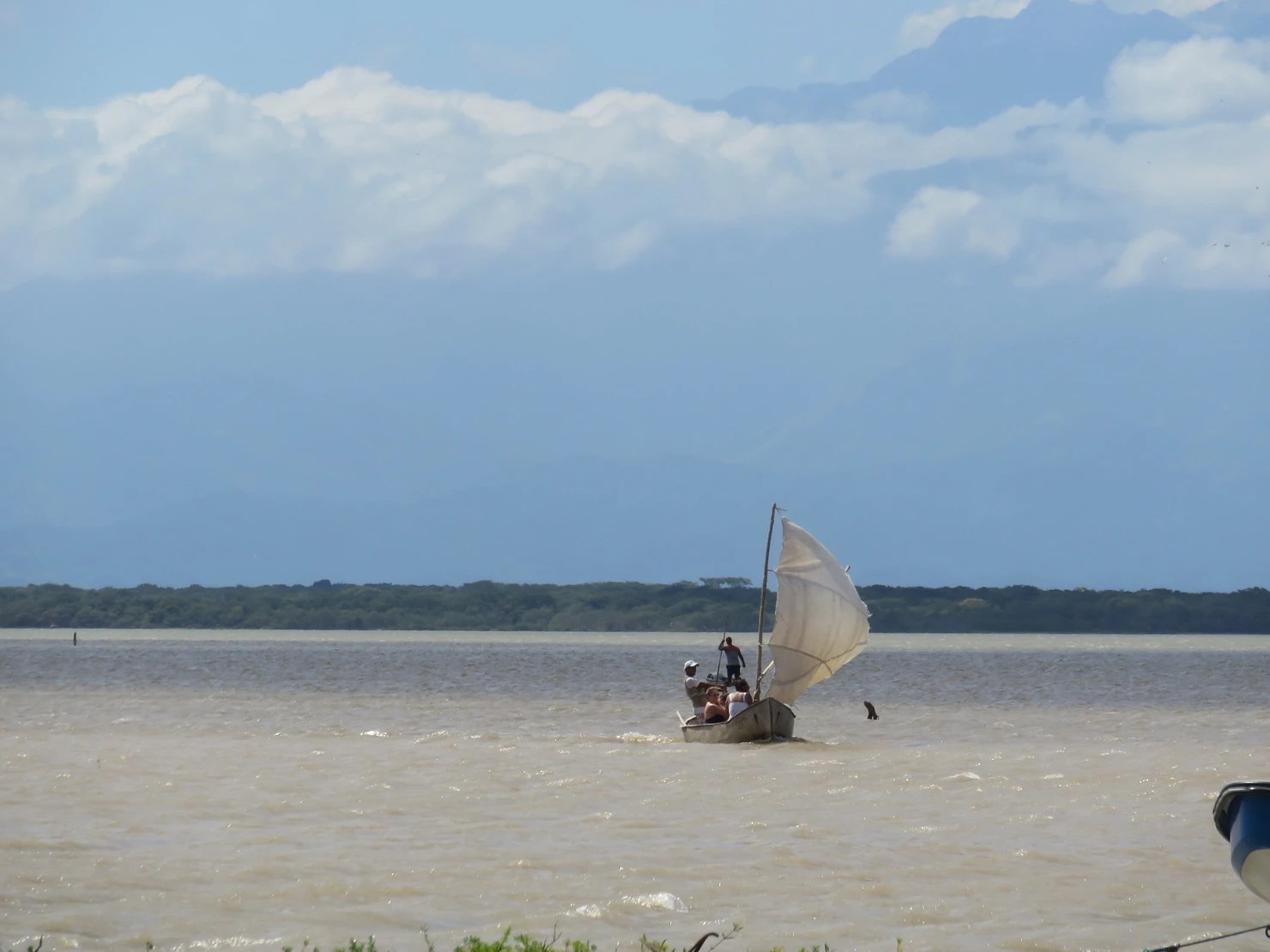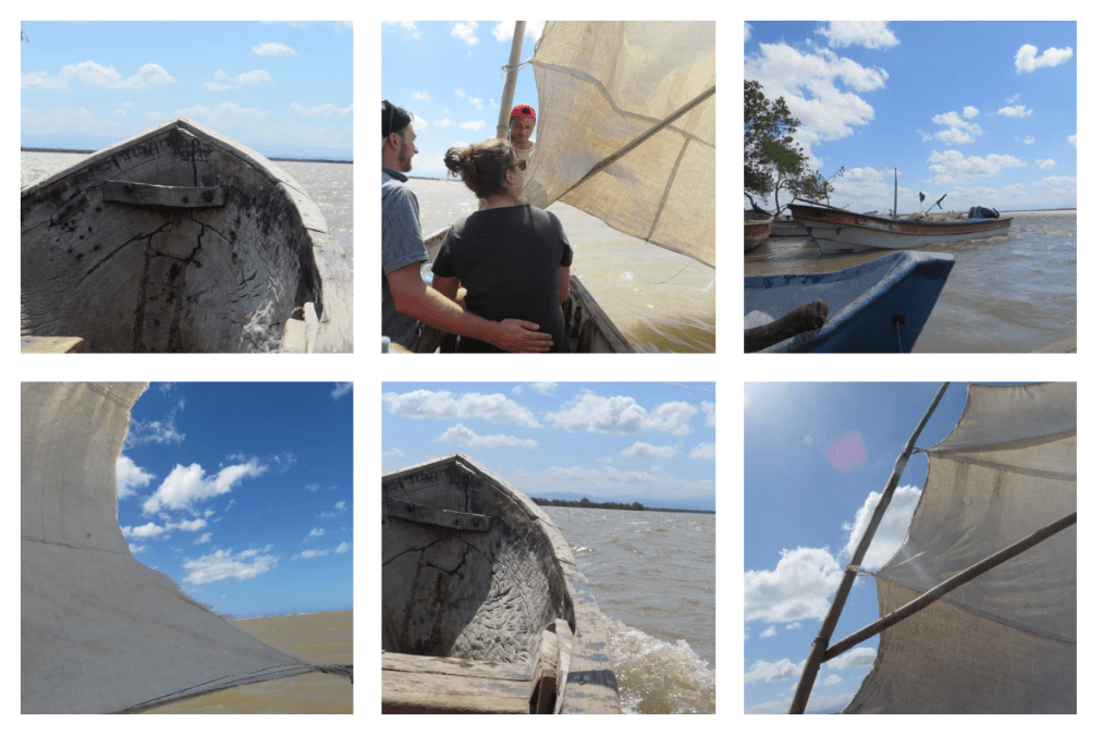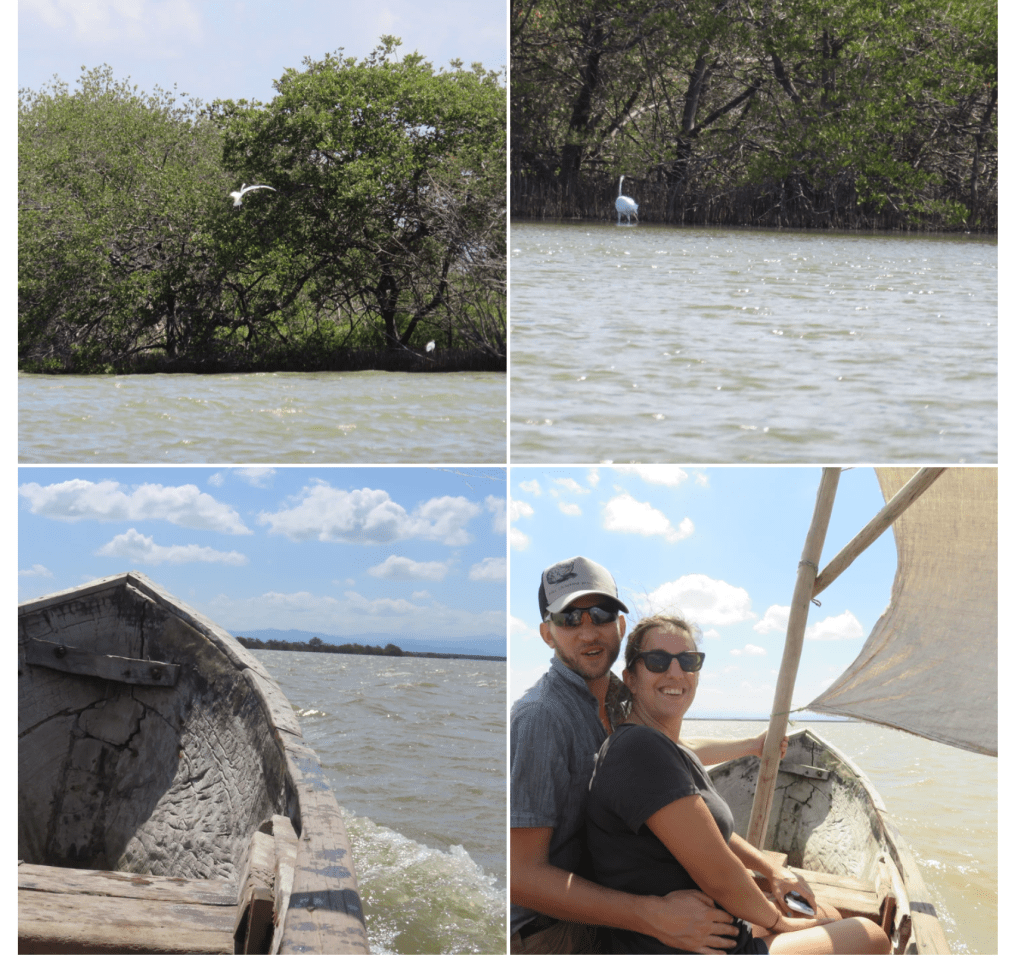 Even with the fear of tipping over, the ride was peaceful. The wind was strong and we were moving fast, but the lagoon was pretty large so it did take awhile to get across to the other side. The coolest thing happened on the way out; I was enjoying the view and the rocking of the boat when all the sudden a fish jumped into my lap!!!! It fell to the floor and without thinking I picked it up and put it back into the water!! It reminded me of the Bert and Ernie skit from Sesame Street “Here Fishy, Fishy, Fishy”