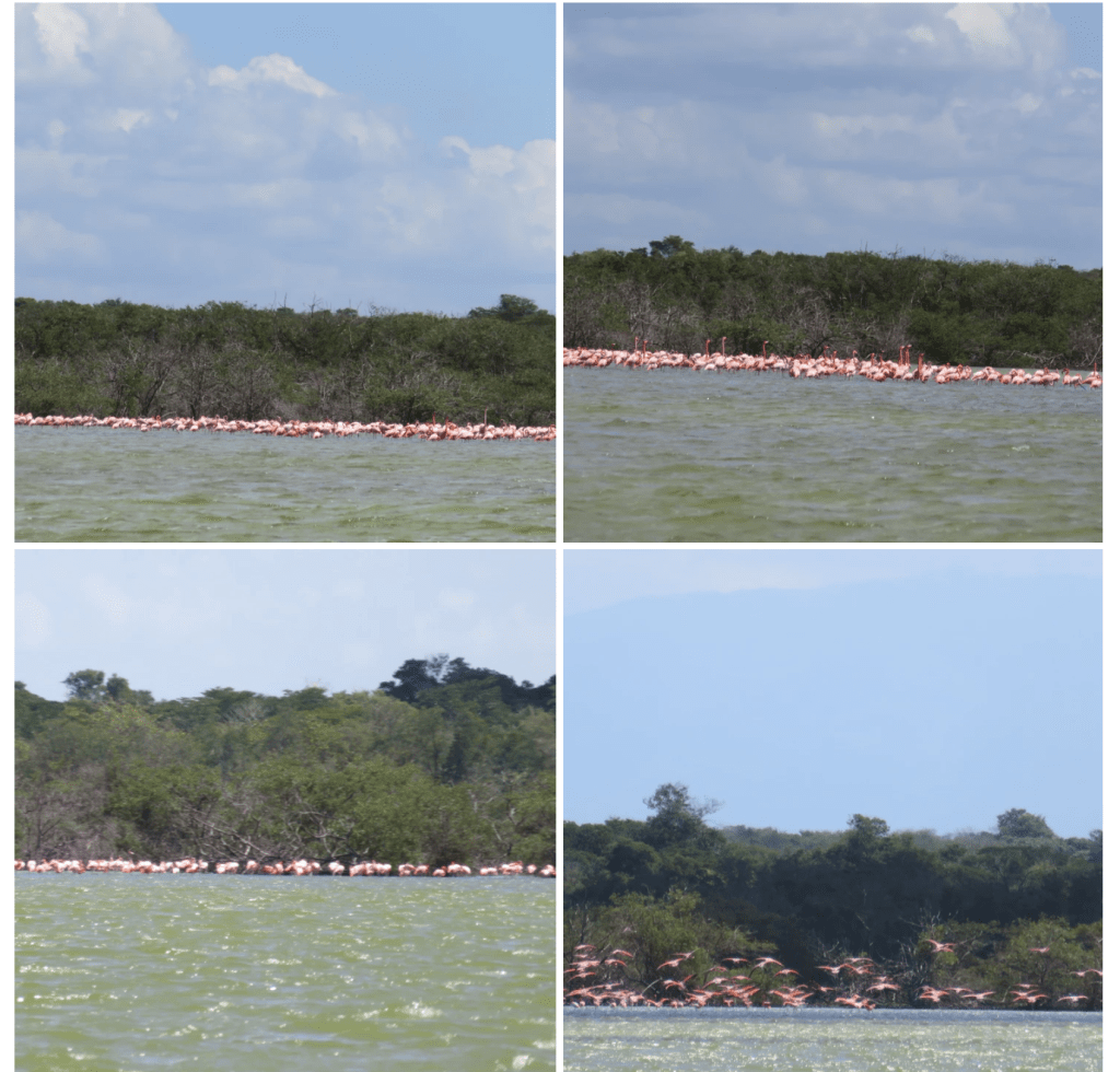 We were so worried that the Flamingos would fly away as we approached and we would not have time to follow them. We also learned there were a lot of rules and if the boats got too close or looked like the Flamingos flew away because of the boat, there could be major fines. Some of the boats in the area might have been in violation!